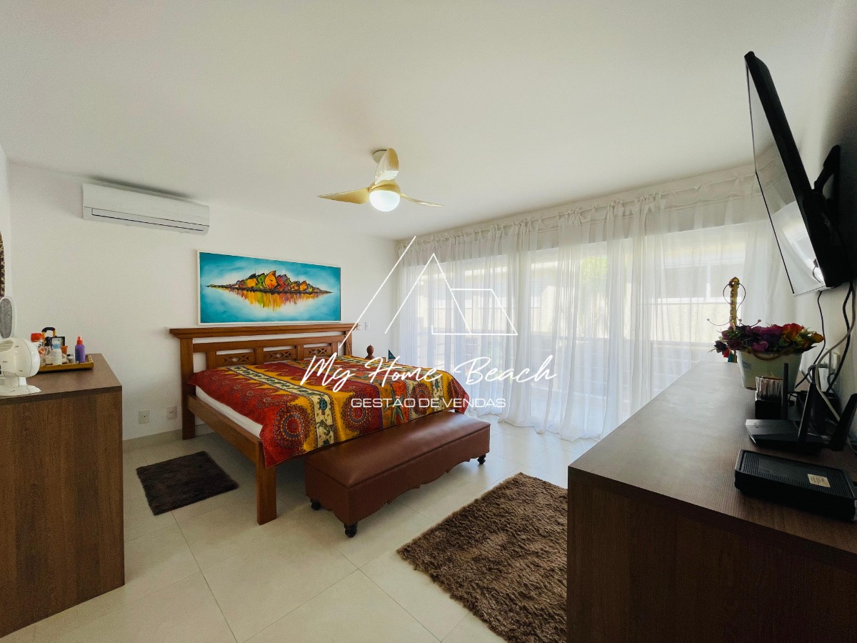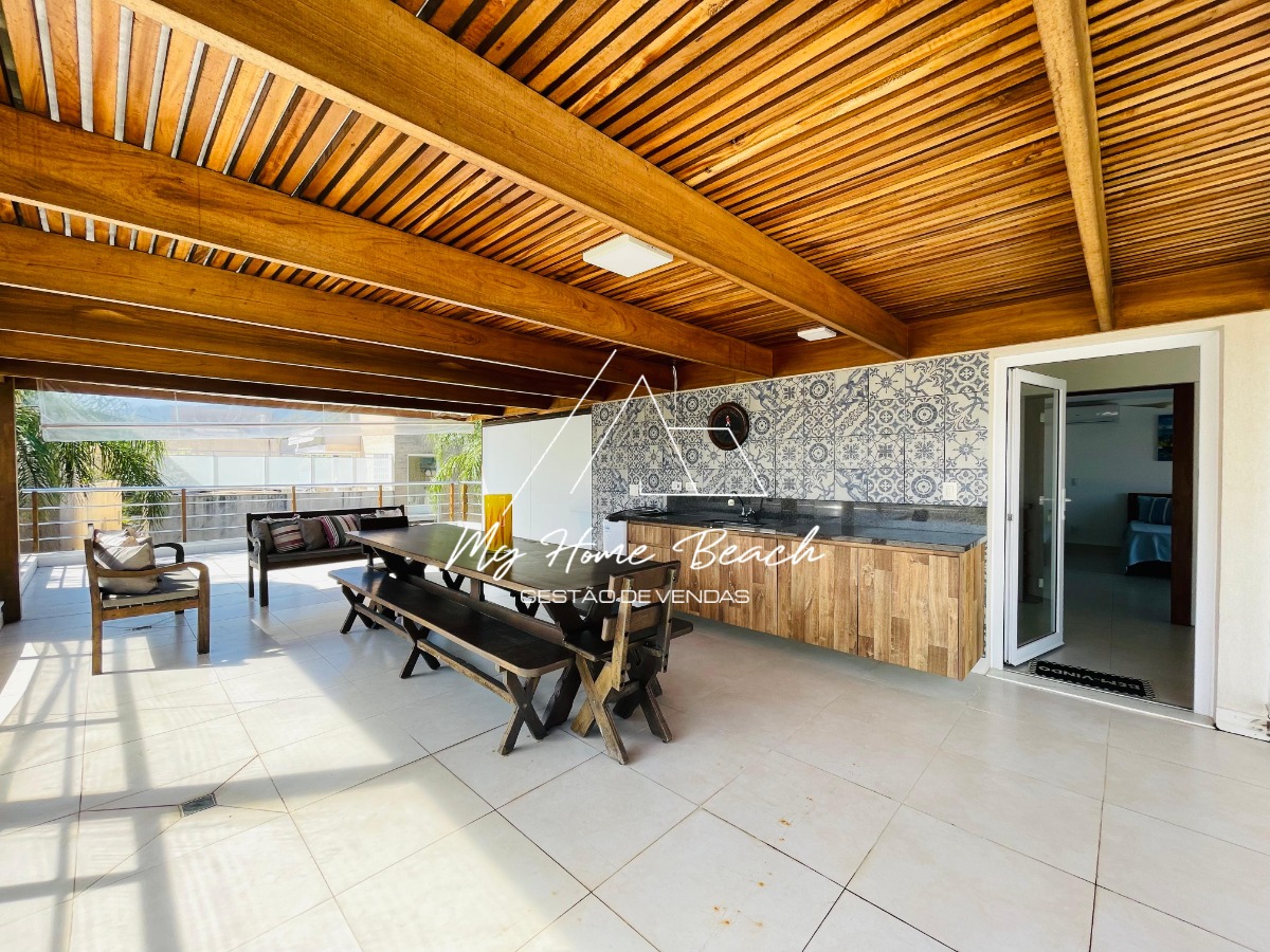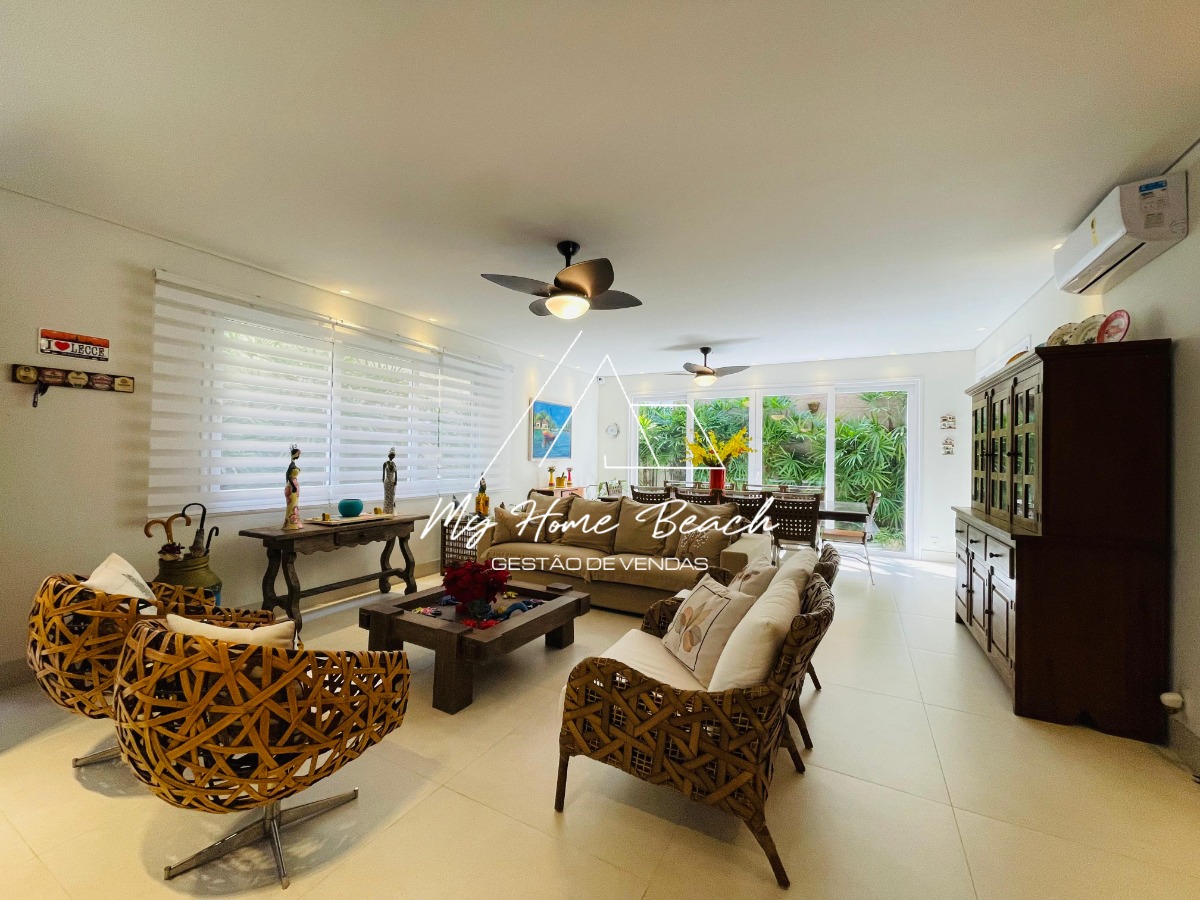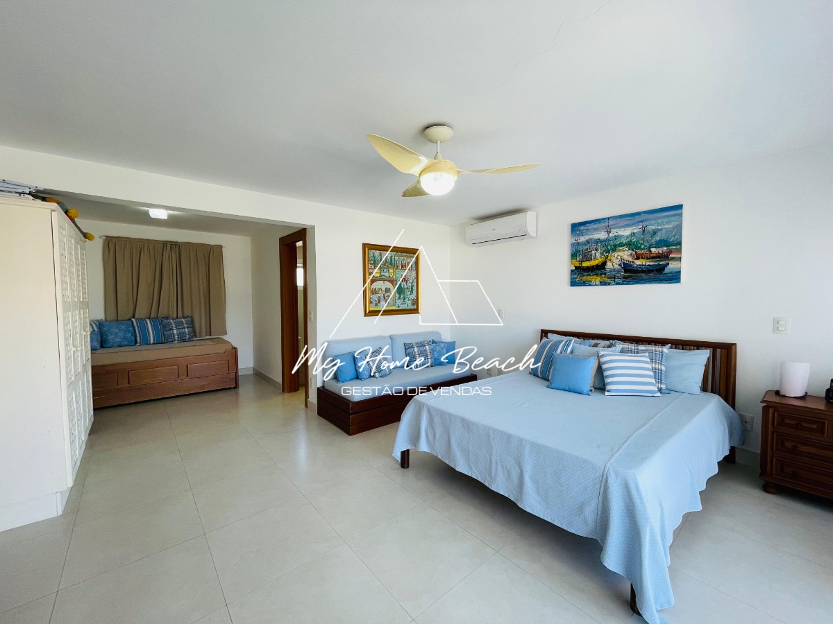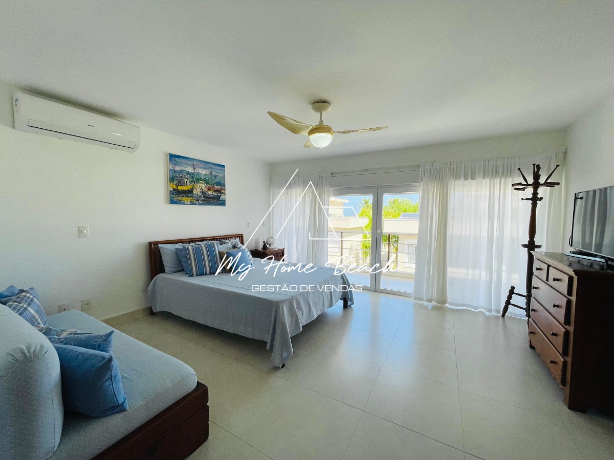 O condomínio com apenas 6 casas, oferece zeladoria, portaria 24h, piscina frente ao mar e serviço de praia.
