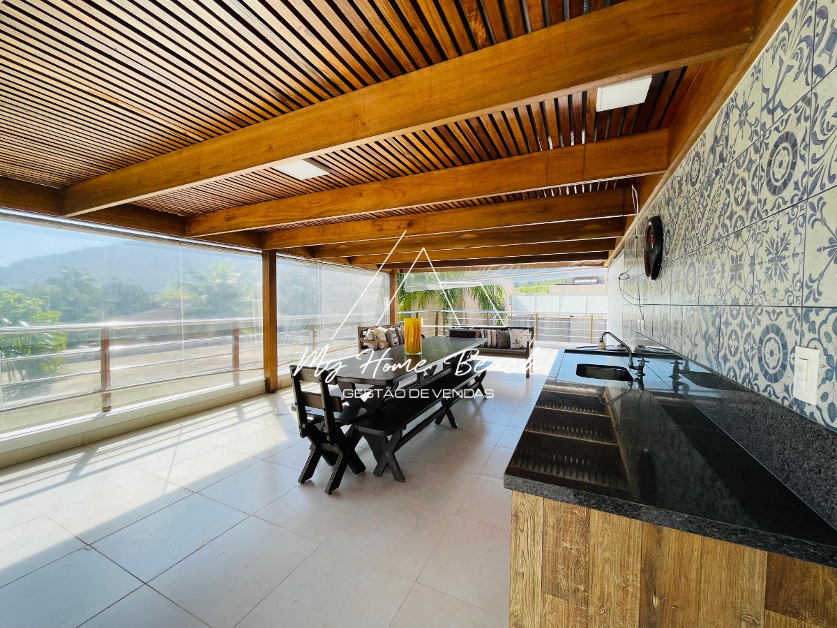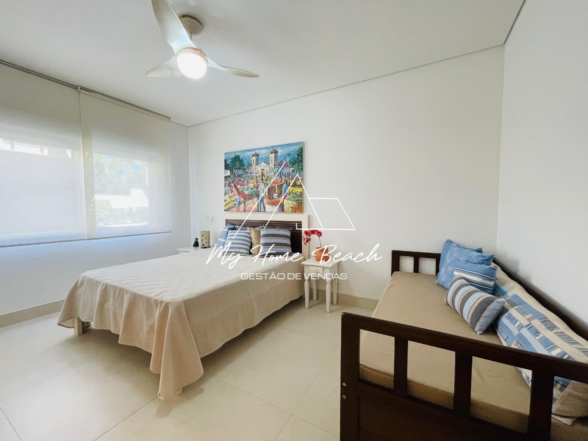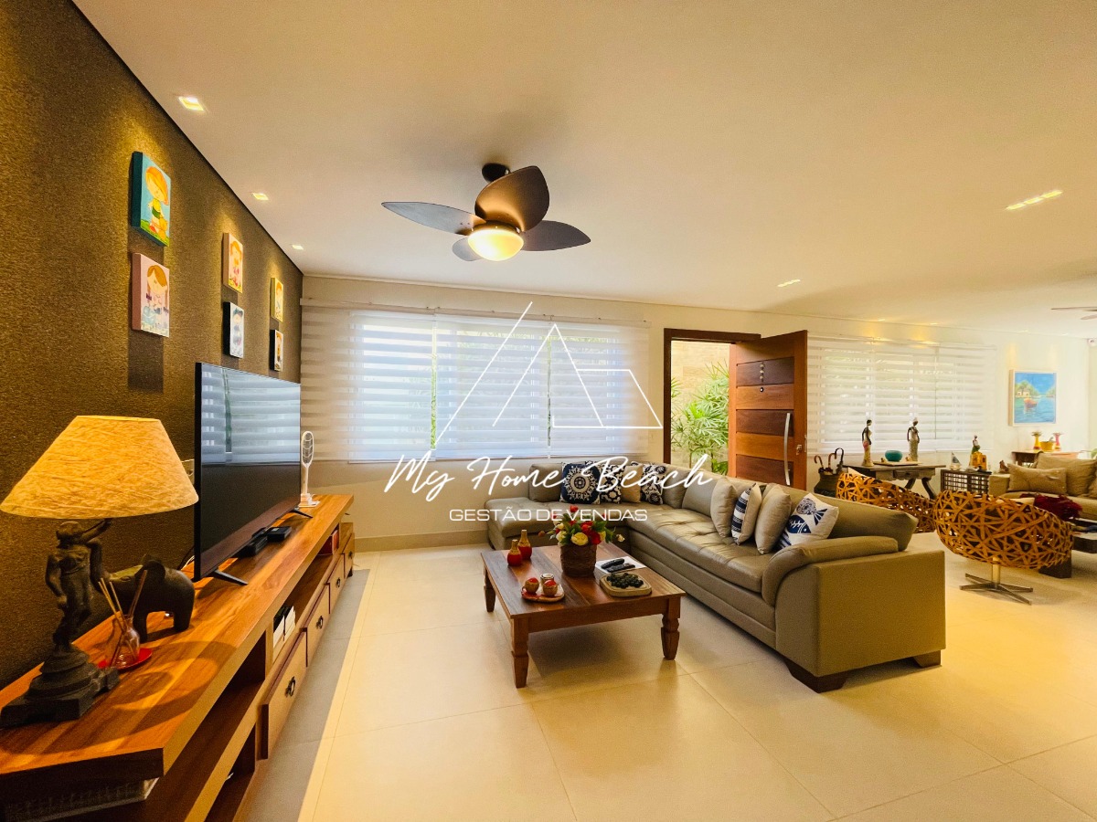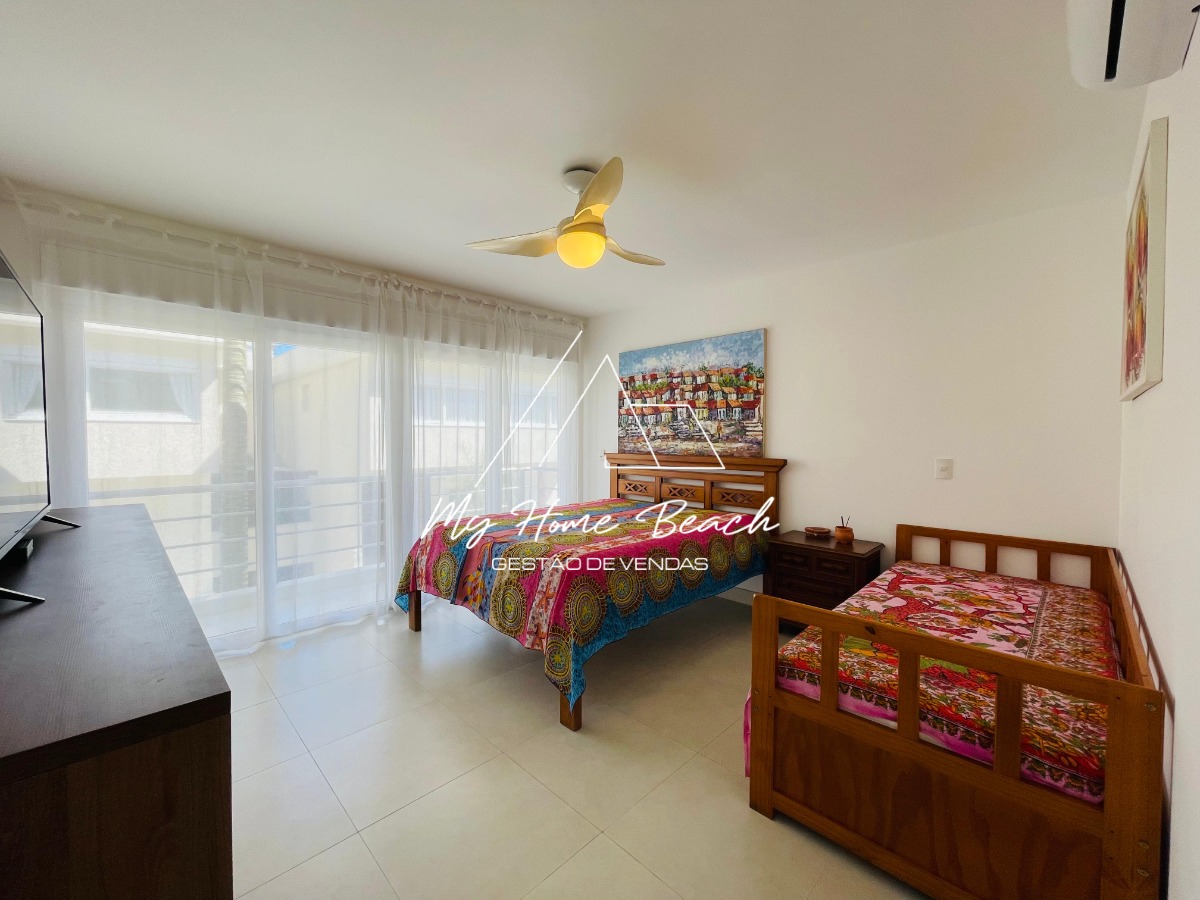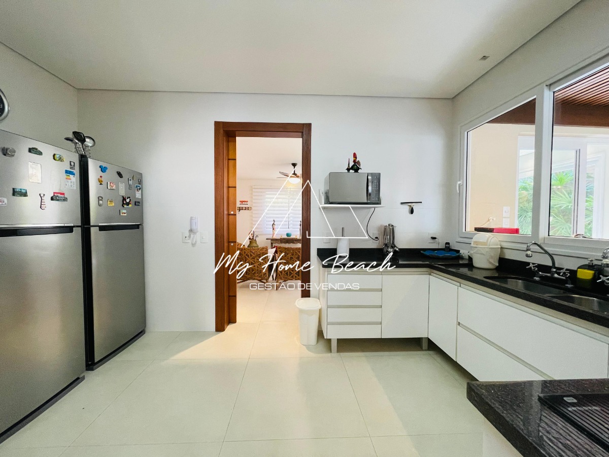 O condomínio com apenas 6 casas, oferece zeladoria, portaria 24h, piscina frente ao mar e serviço de praia.