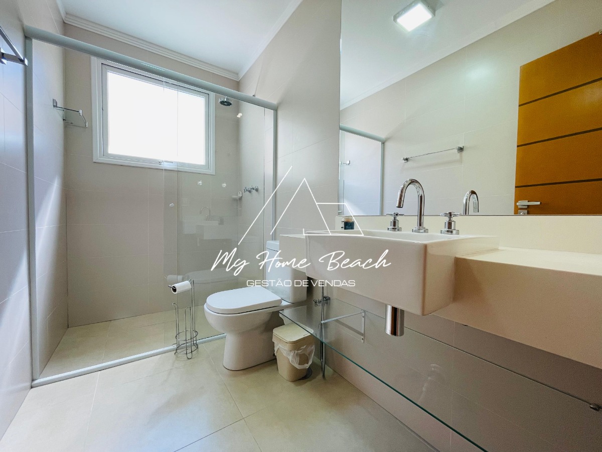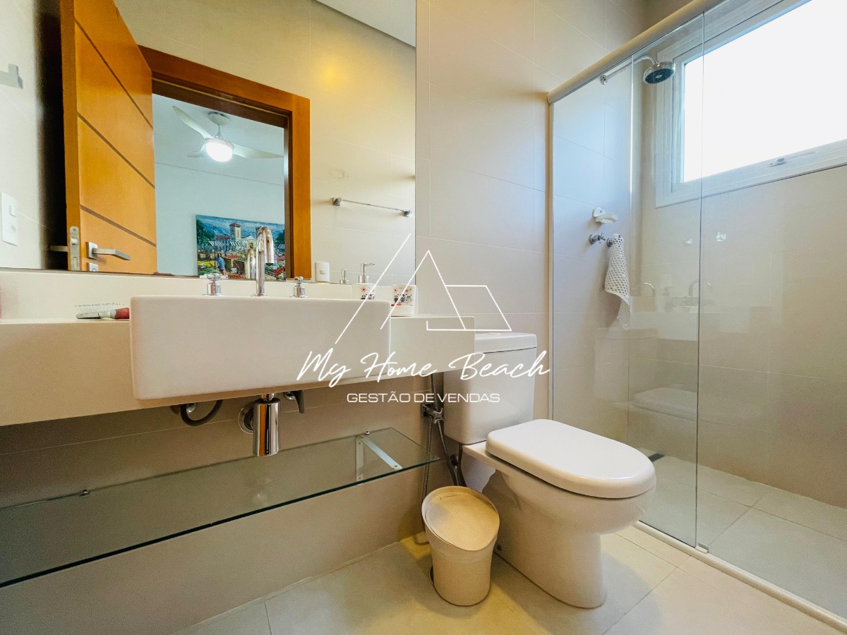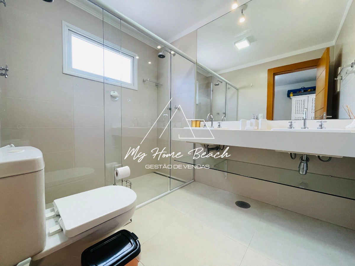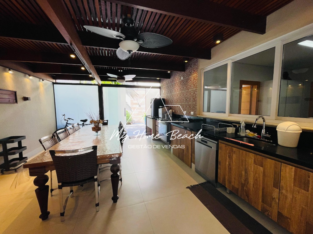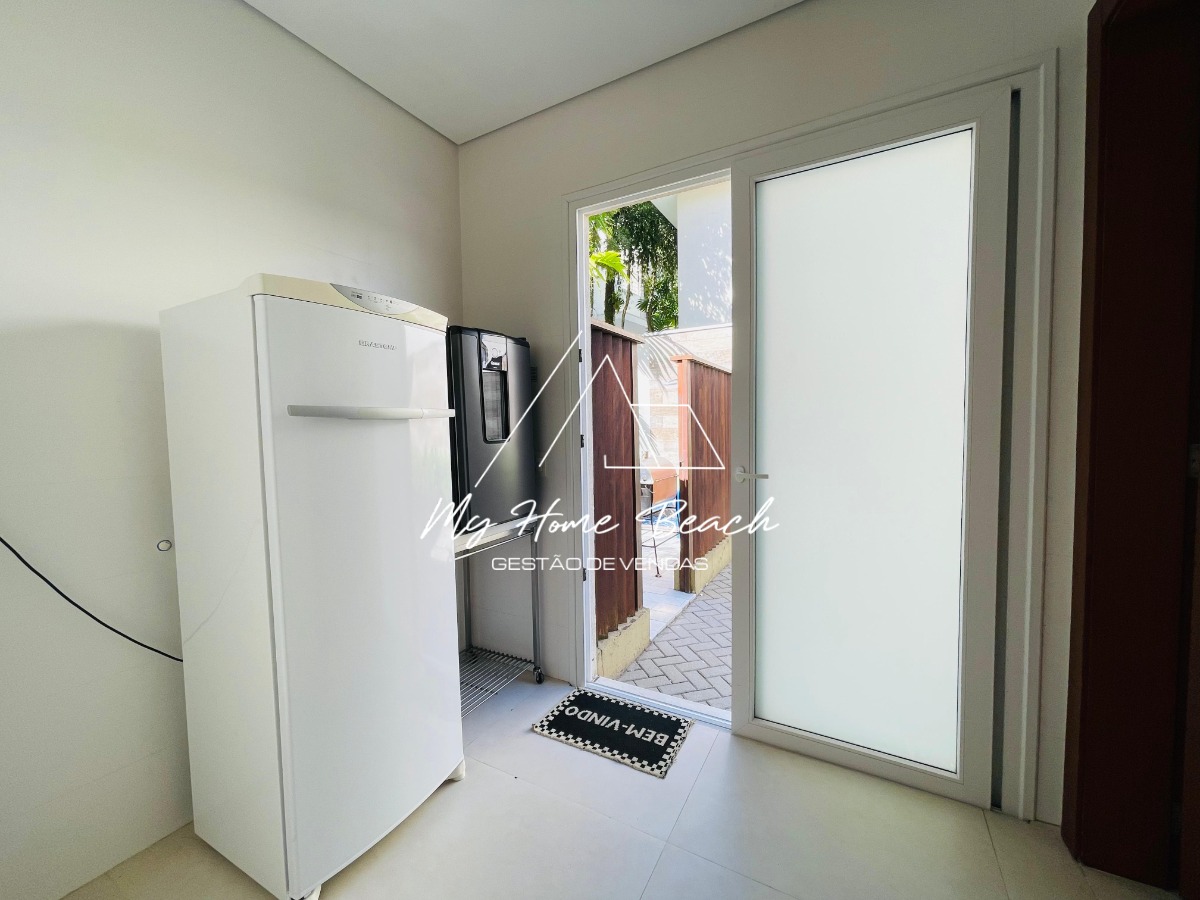 O condomínio com apenas 6 casas, oferece zeladoria, portaria 24h, piscina frente ao mar e serviço de praia.