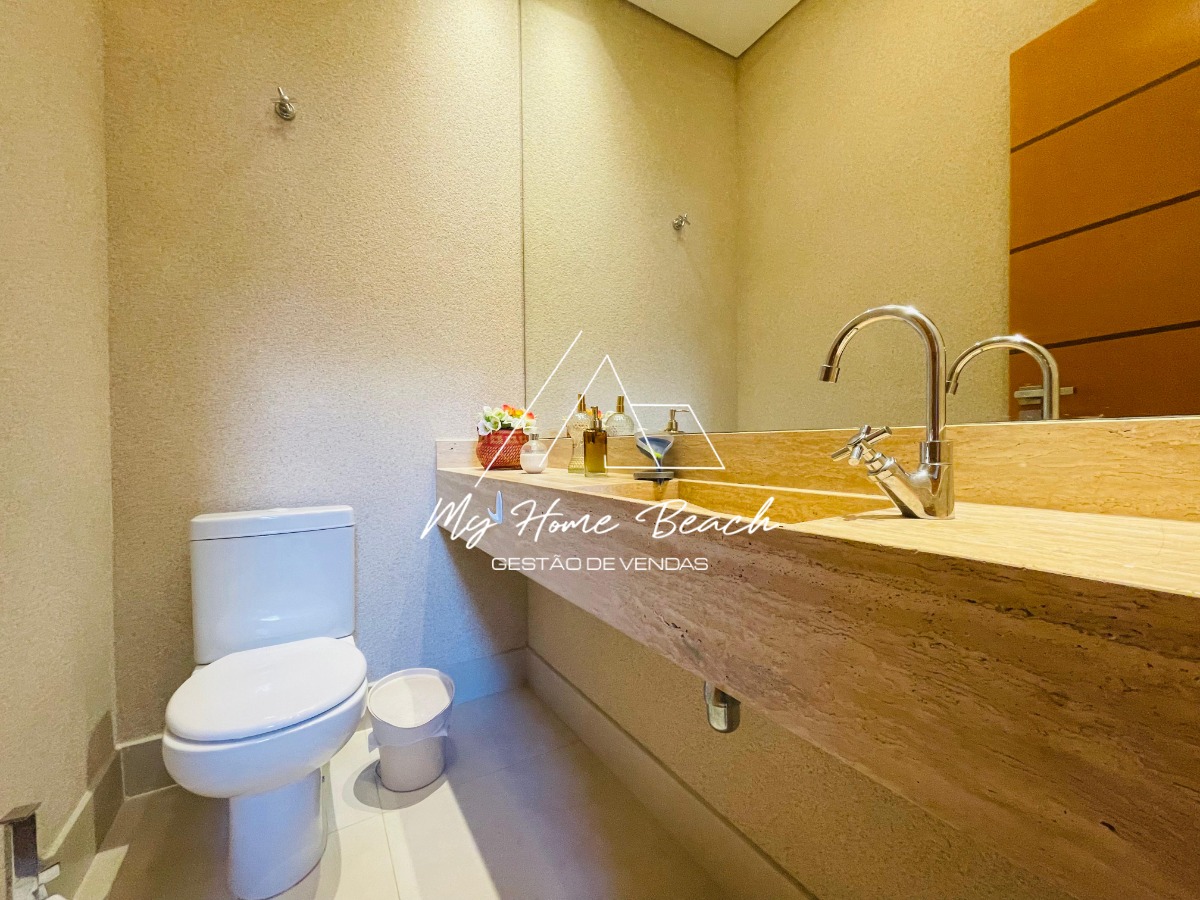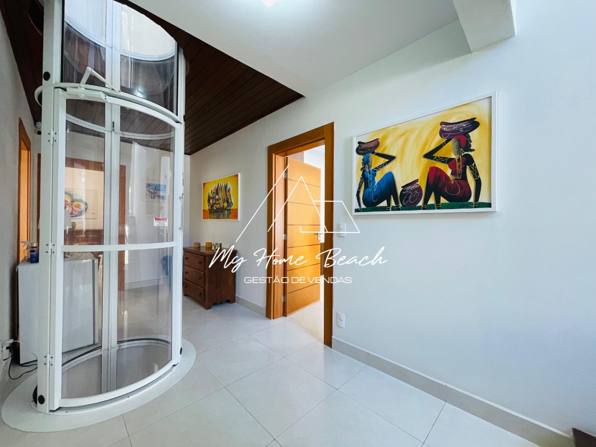 São 5 suítes sendo 1 térrea (todas as suítes com tv), sala em 03 ambientes integrados, lavabo, cozinha, área de serviço e varanda gourmet, elevador, vagas para 4 carros.