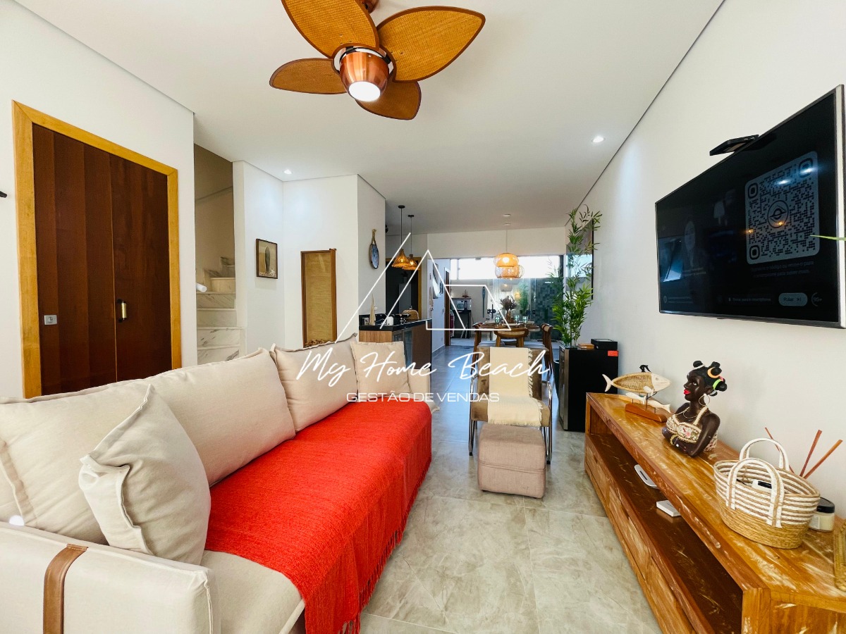 Casa dentro de condomínio fechado, composto por 34 unidades de 120m2, Casa assobradada distribuída em sala com cozinha americana, lavabos, três suítes, varanda gourmet com teto retrátil, e vaga p